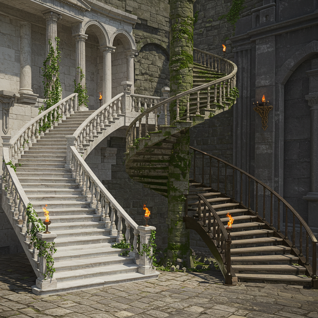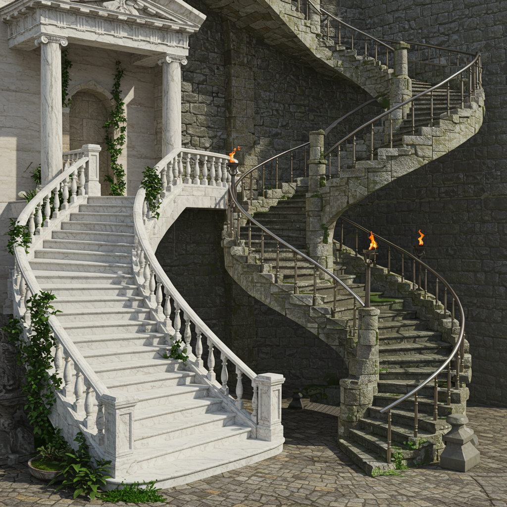 중세로 접어들면서 계단은 더욱 전략적 요소로 작용했어요. 유럽의 성과 요새 구조를 보면, 계단은 외부 침입을 방어하고 지형의 고도를 활용하기 위한 수단으로 사용되었어요. 특히 나선형 계단은 오른손잡이 위주의 적군의 접근을 어렵게 만들어 방어에 유리하도록 설계되었죠. 반면, 아시아 지역에서는 계단을 통해 사찰, 탑, 궁궐 등 신성한 공간으로 오르는 '의식의 통로' 역할이 강했어요. 한국의 종묘 계단은 왕과 제관, 백성을 위한 길이 각각 나뉘어 사용되었고, 일본 신사에서도 토리이부터 본전까지 오르는 긴 계단은 신과 인간의 세계를 구분하는 경계선이자 접근 통로였어요.