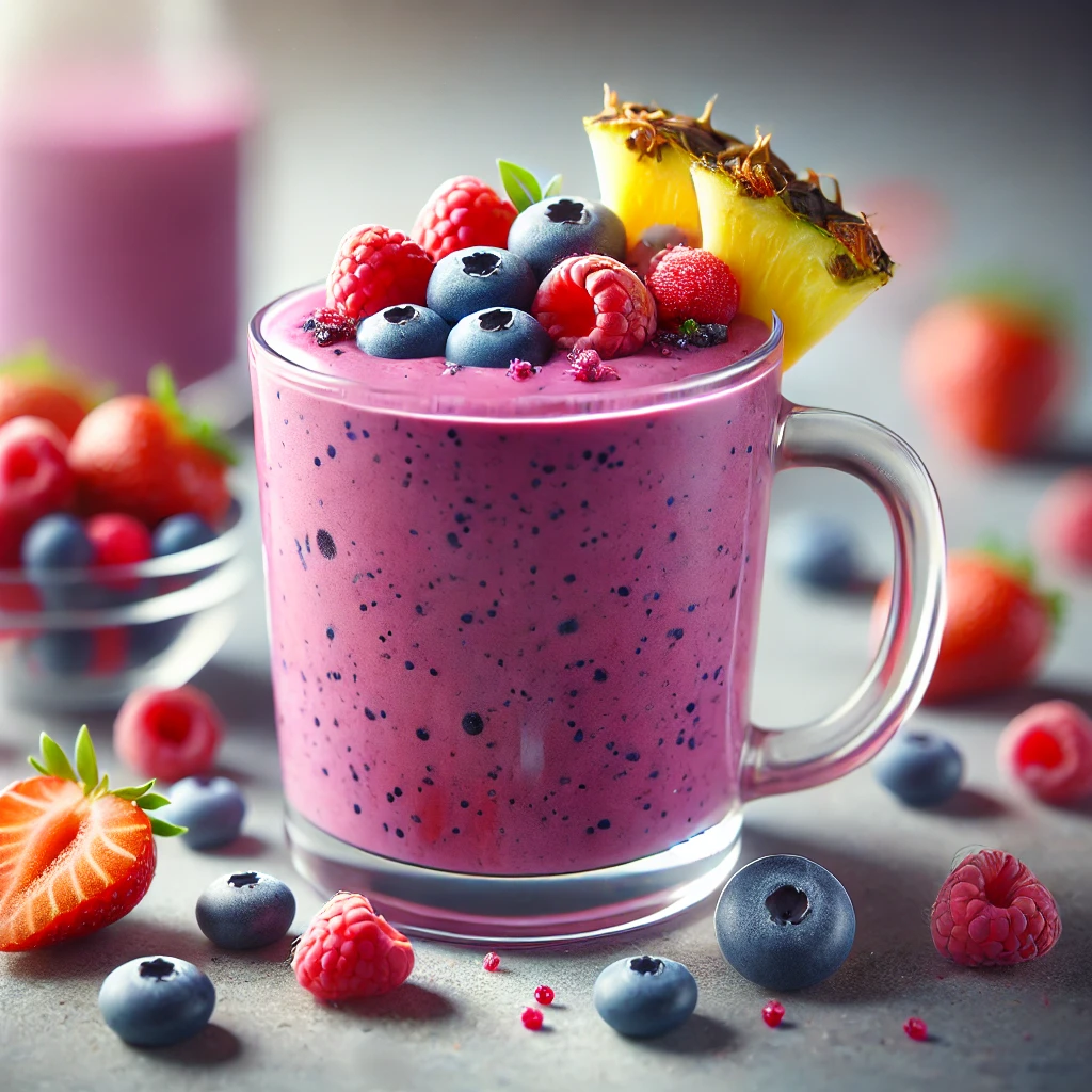 - 베리 믹스 스무디: 블루베리, 딸기, 라즈베리, 그리고 약간의 파인애플을 넣어 만든 이 스무디는 플라바놀이 풍부하면서도 자연스럽게 단맛을 더해줍니다. 여기에 아몬드나 호두를 추가하면 단백질과 건강한 지방을 더할 수 있어 포만감이 오래 지속됩니다. 이 스무디는 아침 식사 대용으로 이상적이며, 운동 후 영양 보충에도 적합합니다.